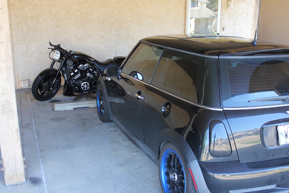 My dirty Mini! And a dirty bike in the back!