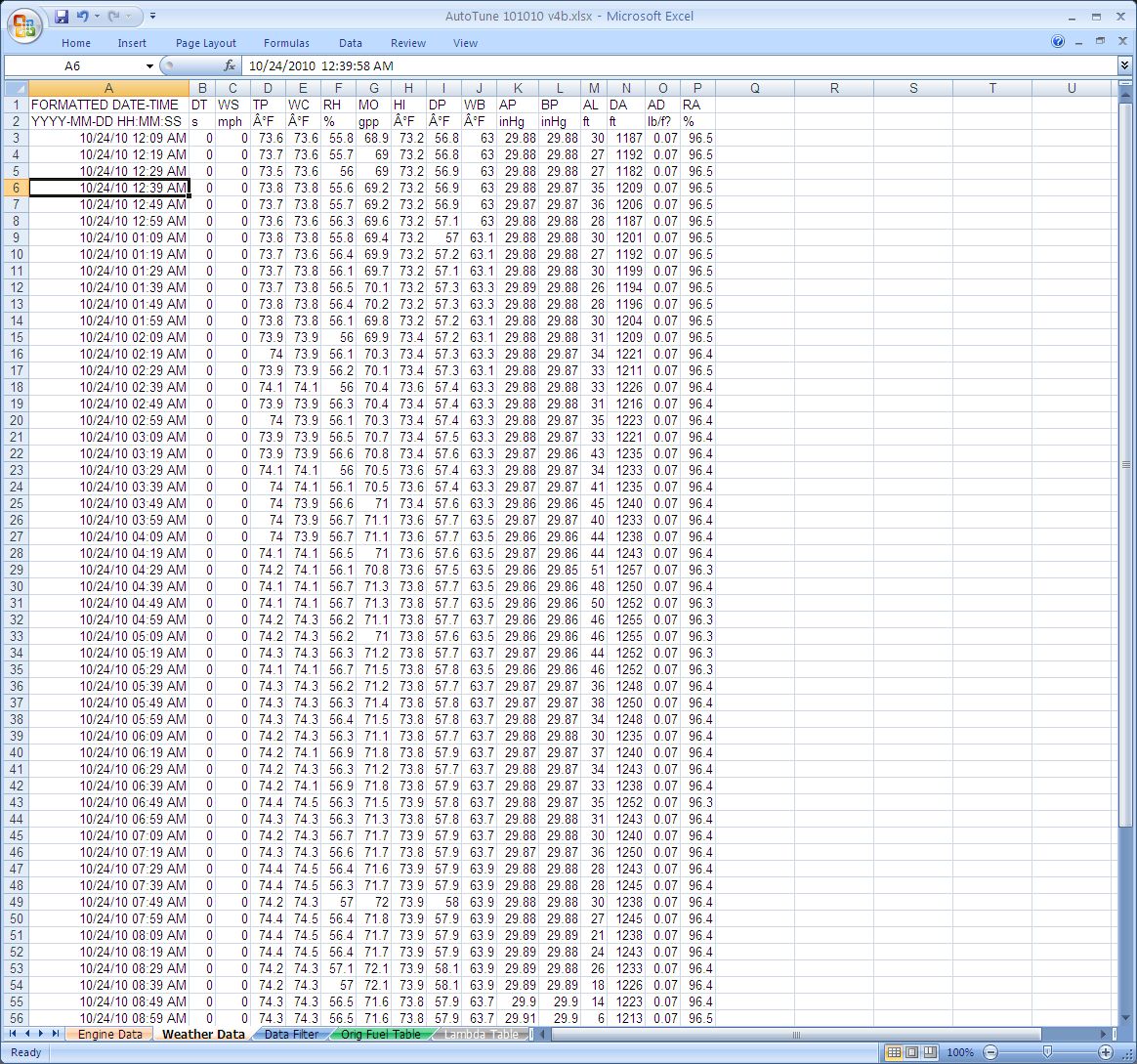 Engine tuning spreadsheets