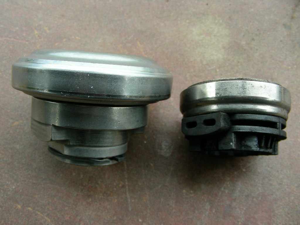 Stock clutch release bearing on the left, OS Giken on the right.